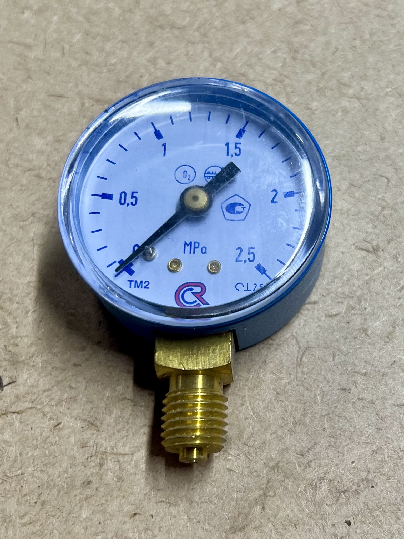 Сварочный манометр для кислорода (O2) производится с диаметром корпуса 50 мм. Класс точности: 2,5