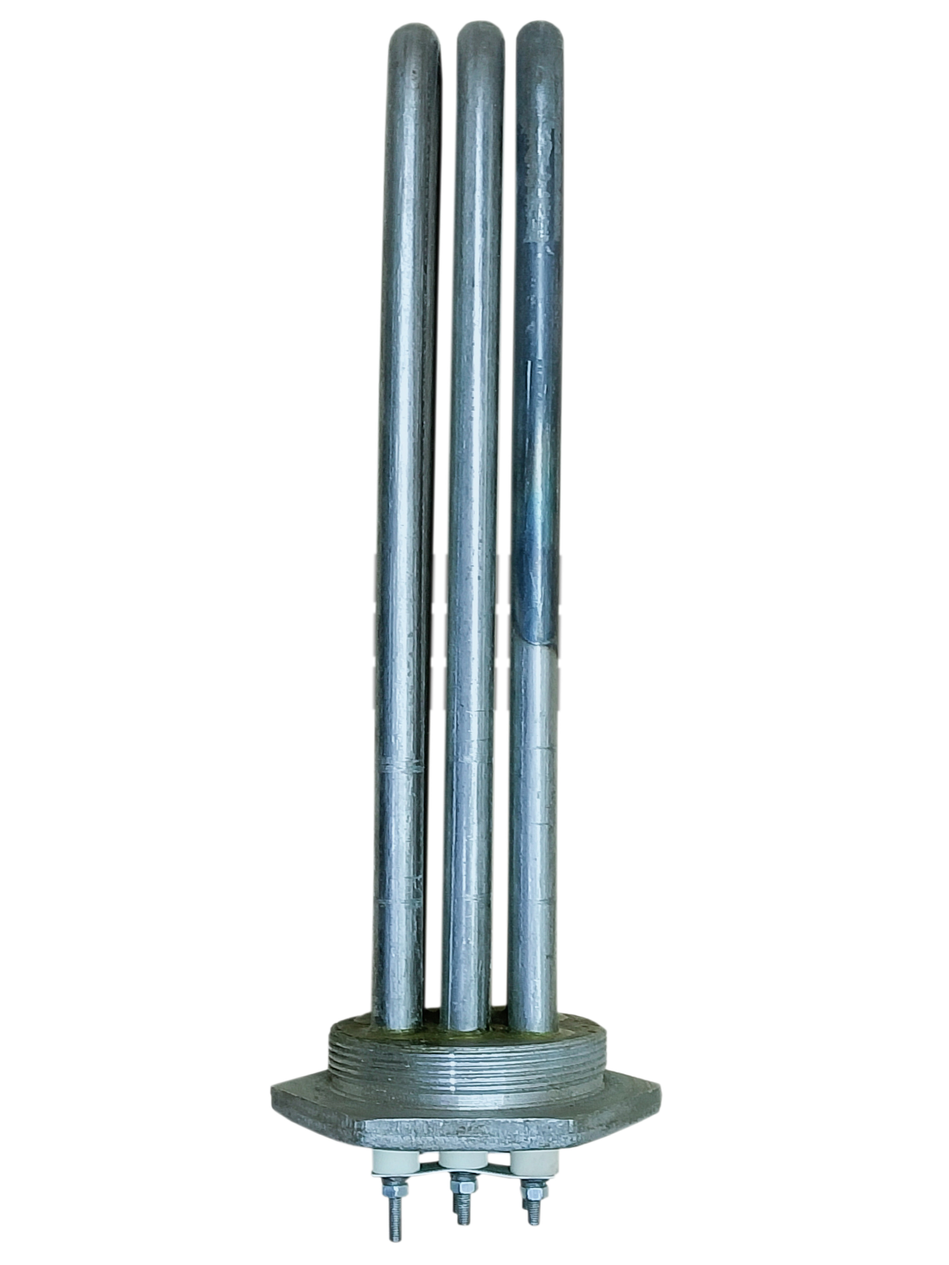 Блок ТЭН-3 представляет собой группу из одного трубчатого электронагревателя (ТЭН), закрепленных на фланце. С одной стороны фланец снабжен резьбой, а с обратной стороны шестигранником под ключ. Стандартный фланец имеет резьбу 2.5" и изготавливается из стали. ТЭНБ-3 работает в водной среде.